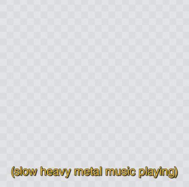 (SLOW HEAVY METAL MUSIC PLAYING)